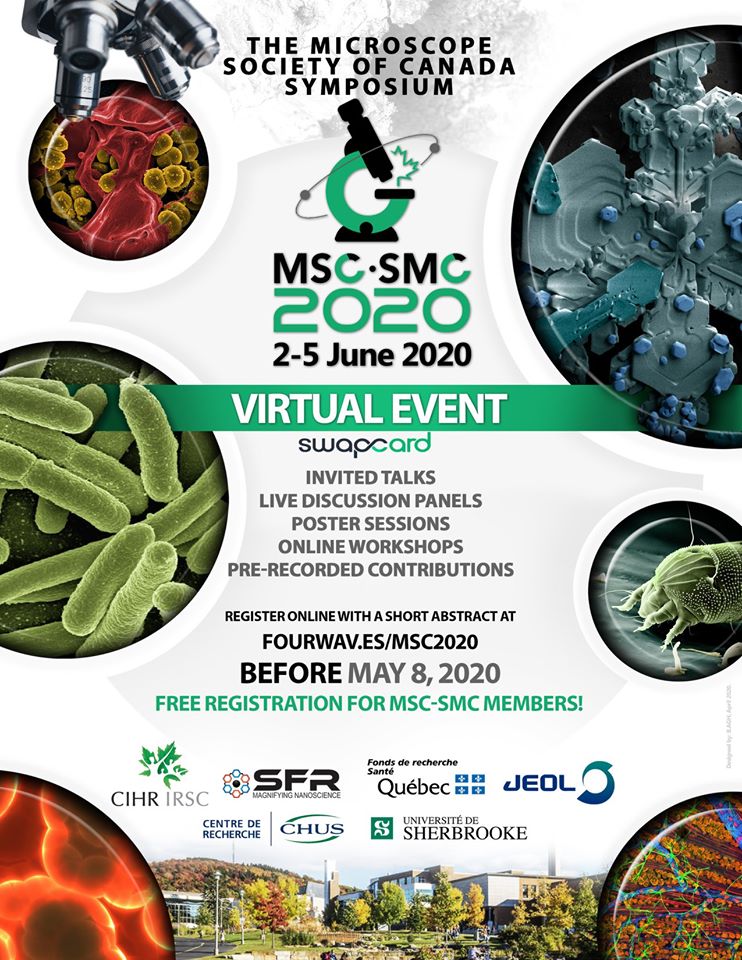 Le 2020 MSC-SMC Symposium aura lieu entre le 2 et le 5 juin à Sherbrooke, Québec. Venez rencontrer des chercheurs et des industriels travaillant dans le domaine de l’imagerie au Canada et à l’extérieur pour développer votre réseau et en apprendre davantage sur les derniers avancements scientifiques en matière d’imagerie. Pour plus de détails, cliquez ici.