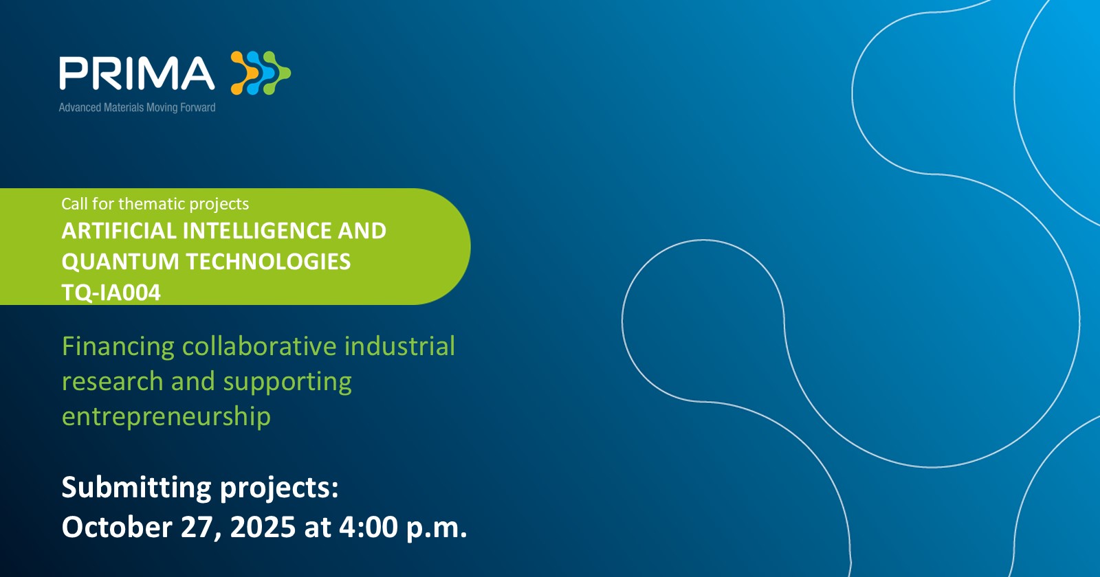 For a submission to PRIMA Québec, the proposed research and development project must focus on the themes of the artificial intelligence and quantum technologies call in addition to being related to advanced materials.
