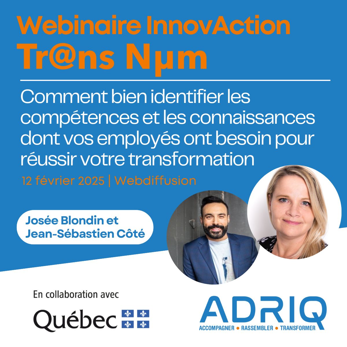 ADRIQ – Webinaire InnovAction Tr@ns Num : Comment bien identifier les compétences et les connaissances dont vos employés ont besoin pour réussir votre transformation ?