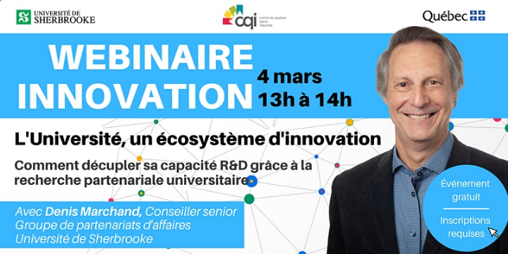 Pour apprendre comment la recherche partenariale universitaire peut décupler votre capacité en recherche et développement, l’Université de Sherbrooke vous propose ce webinaire! Et c’est gratuit!