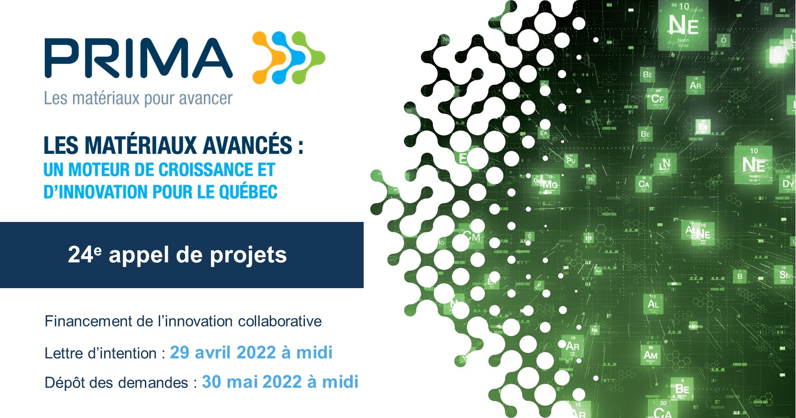 Lancé le lundi 14 février 2022, cet appel vise à soutenir l’innovation dans le domaine des matériaux avancés en finançant des programmes de recherche destinés à accélérer le développement de matériaux avancés comme réponse pratique aux grands défis industriels québécois.