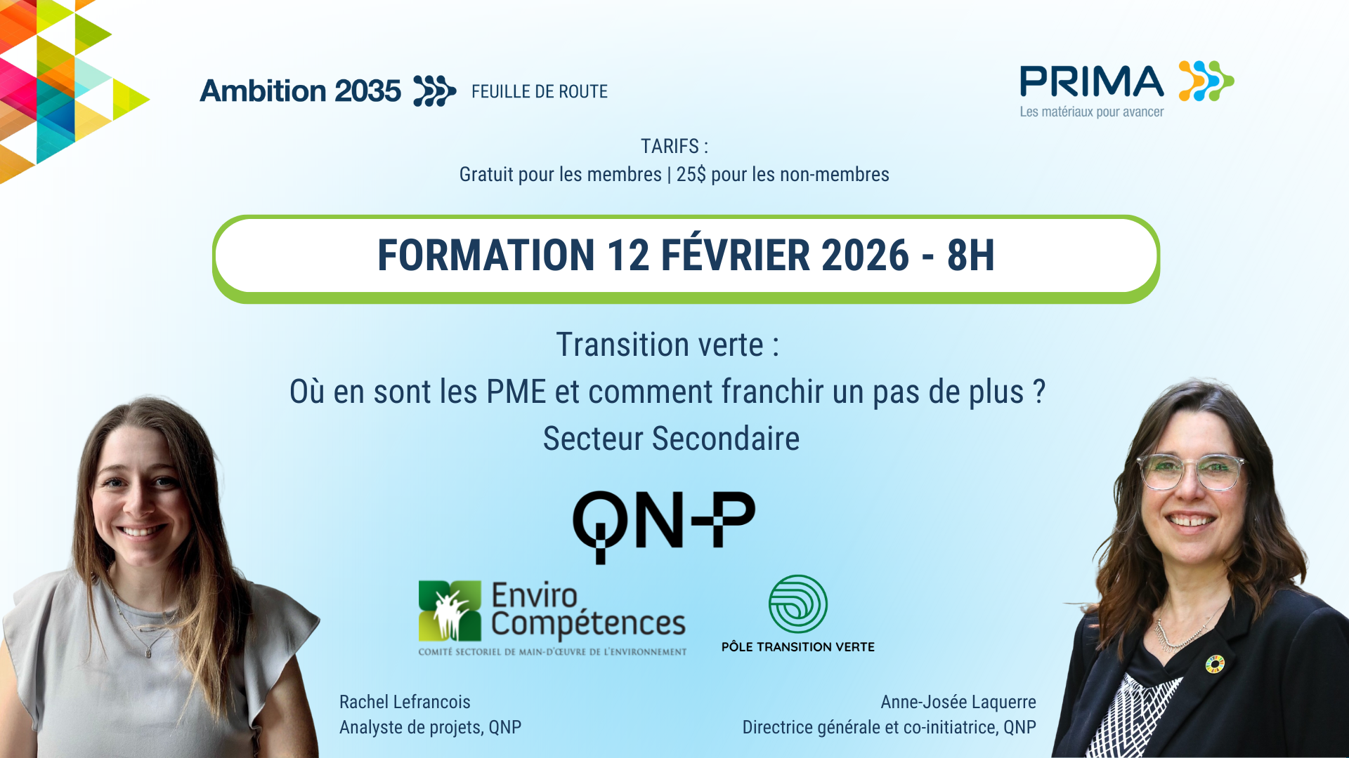 Dans le cadre de l’appel à projets – secteurs stratégiques, et dans un contexte de structuration et d’accélération des technologies quantiques au Québec, PRIMA Québec organise un webinaire stratégique dédié au rôle clé de l’innovation en matériaux avancés dans l’accélération et l’industrialisation des technologies quantiques, réunissant les acteurs de la recherche, de l’industrie et de […]