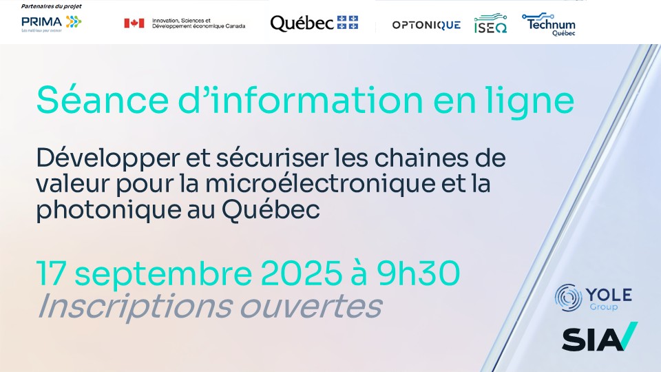 La séance d’information en ligne, qui aura lieu le 17 septembre de 9h30 à 10h30, sera l’occasion de mieux connaître le positionnement et la croissance des industries de la microélectronique et de la photonique au Québec ainsi que des industries des minéraux, des matériaux et des composants situées en amont et au médian de leurs […]