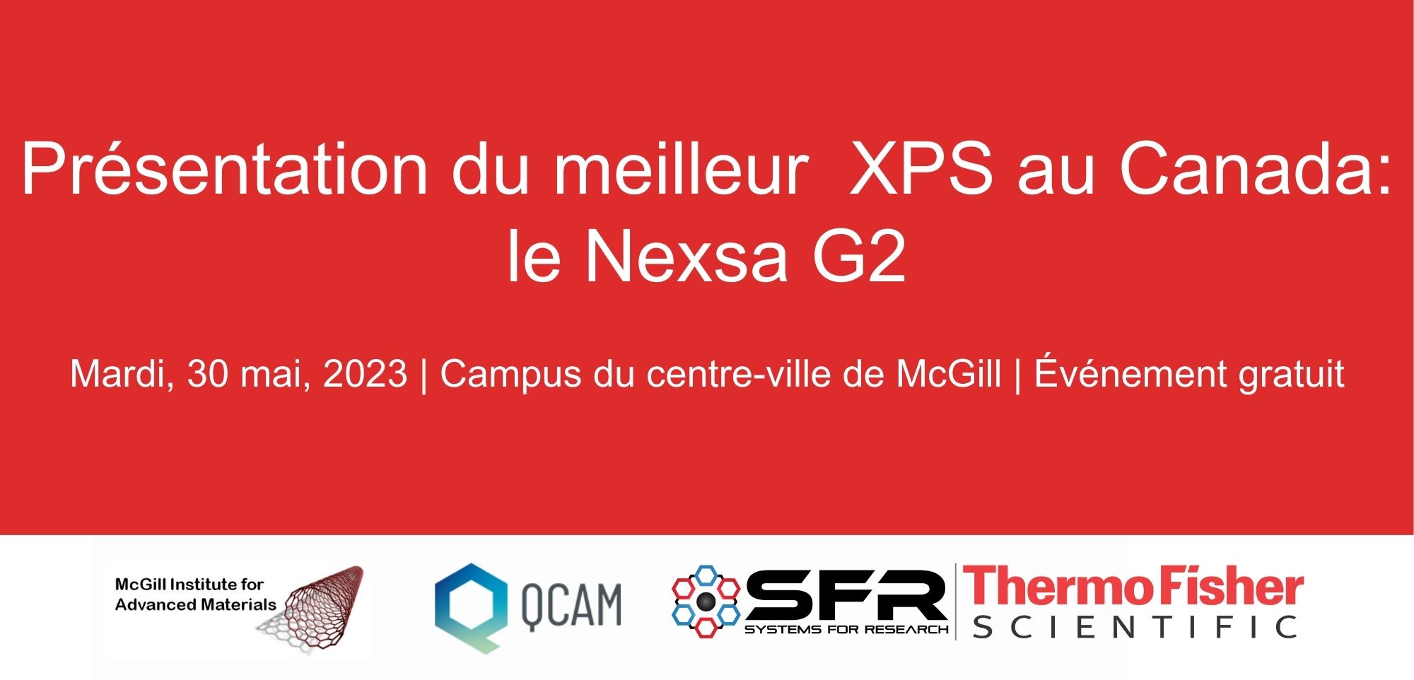 Université McGill 845 Rue Sherbrooke Ouest, Montréal, CanadaL'arrivée du nouvel instrument de spectroscopie photoélectronique à rayons X (XPS), le Thermo-Scientific NEXSA G2, à McGill offre à la communauté locale des matériaux avancés une occasion passionnante de faire progresser la recherche. Unique en son genre au Québec, le NEXSA G2 offre des capacités d’analyse approfondie de la chimie de surface des matériaux solides. […]