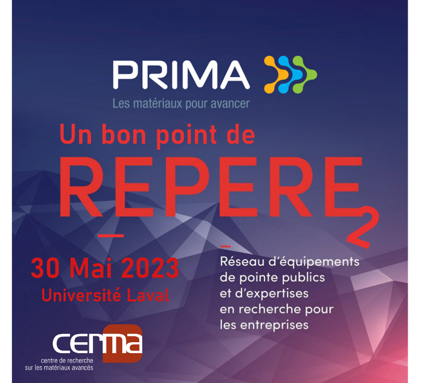 ExpoCité-Centre de foires 250A, Boulevard Wilfrid-Hame, Québec, QC, CanadaLe CERMA, le CQMF et le RQMP organisent le Forum Québécois sur les Matériaux Avancés (FQMA) - Tout sur la recherche collaborative! Un événement pour lequel PRIMA est heureux d'être partenaire et qui aura lieu les 13 et 14 avril 2023 à Québec. Vous trouverez ici plus d'informations sur les objectifs de l'événement, les conférenciers, […]