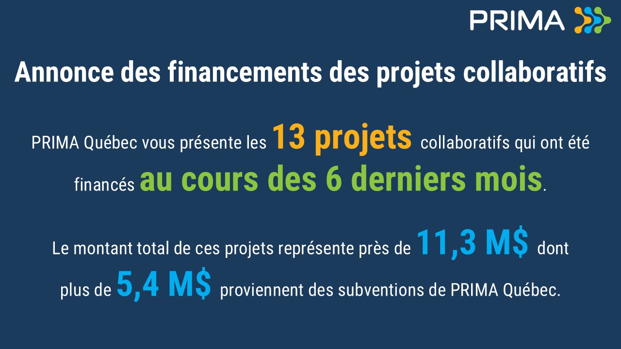 Pour consulter tous les détails de tous les projets financés par PRIMA Québec, cliquez ici.
