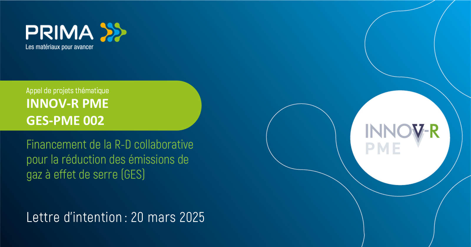 La mesure INNOV-R PME est rendu possible grâce au Fonds d’électrification et de changements climatiques (FECC) et les sommes sont administrées par le ministère de l’Économie, de l’Innovation et de l’Énergie (MEIE). La mesure a pour but de permettre la réalisation de projets de recherche industriels innovants ayant un potentiel élevé de réduction des GES au Québec, dont les retombées permettront à la province d’atteindre ses objectifs et ses cibles de réduction à moyen et à long termes, notamment pour 2030, laquelle est fixée à 37,5 % sous le niveau de 1990.