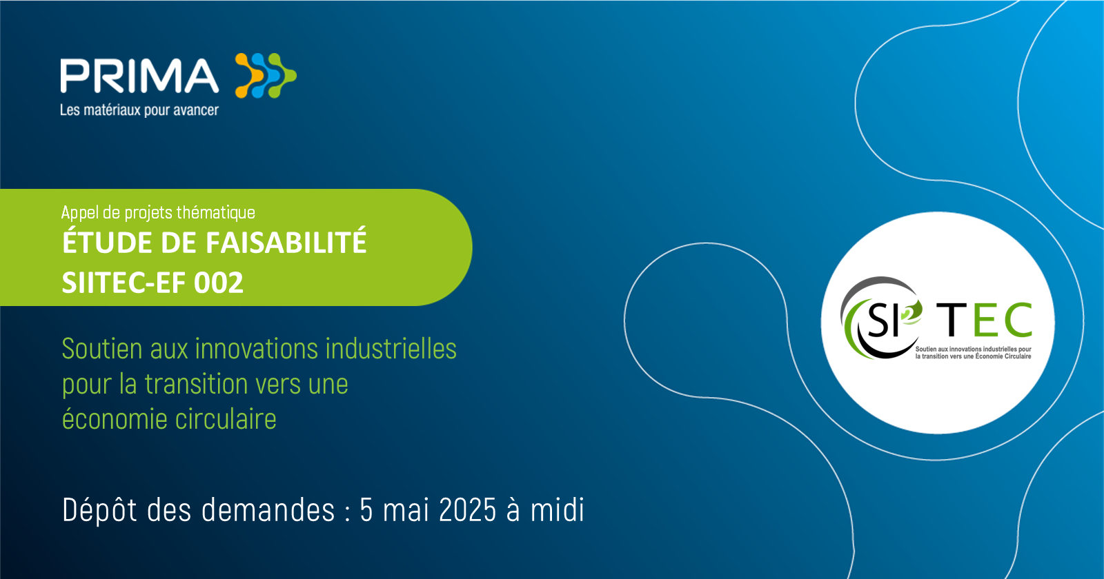 Dans le cadre du Programme de soutien aux innovations industrielles pour la transition vers une économie circulaire (SI2TEC) déployé en novembre 2022, PRIMA lance un nouvel appel à projets intitulé « Concrétiser la circularité en industrie : de la vision à la planification » visant à soutenir la réalisation d’études de faisabilité à vocation industrielle et la planification de projets innovants en économie circulaire concernant les matériaux avancés au Québec.